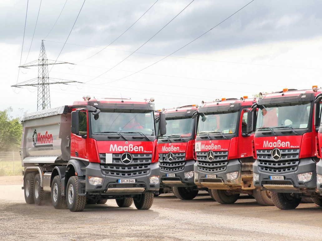 LKW4-Achs KipperMit Allrad, und Bordmatik als Dreiseitenkipper oder Hinterkipper 16,5t Nutzlast und einem Gesamtgewicht von 32t3-Achs KipperMit Allrad, und Bordmatik als Dreiseitenkipper 13,5t Nutzlast und einem Gesamtgewicht von 26tTandemzüge3-Achser mit Tandemanhänger inklusive Bordmatik 24t Nutzlast und einem Gesamtgewicht von 40t SattelkipperSattelzugmaschine mit Kippmulde und Hydraulischer Heckklappe 26t Nutzlast und einem Gesamtgewicht von 40tSattel-TiefladerSatteltieflader mit integrierten Radmulden zum Transport von Radladern bis zu einer Höhe von 4,5m, mit 45,5t Nutzlast und einem Gesamtgewicht 66,7tAnhängertiefladerAnhängertieflader bis zu einer Transportbreite von 3,2m und einer Nutzlast von 32t